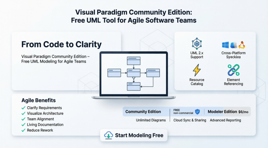 Enter Visual Paradigm Community Edition: a robust, free UML tool designed to empower teams with enterprise-level modeling capabilities without the enterprise price tag. This comprehensive guide explores how Software Engineering teams can leverage Visual Paradigm Community Edition to enhance their Agile workflows, improve system design clarity, and foster better collaboration—all while maintaining the flexibility and speed that Agile demands.